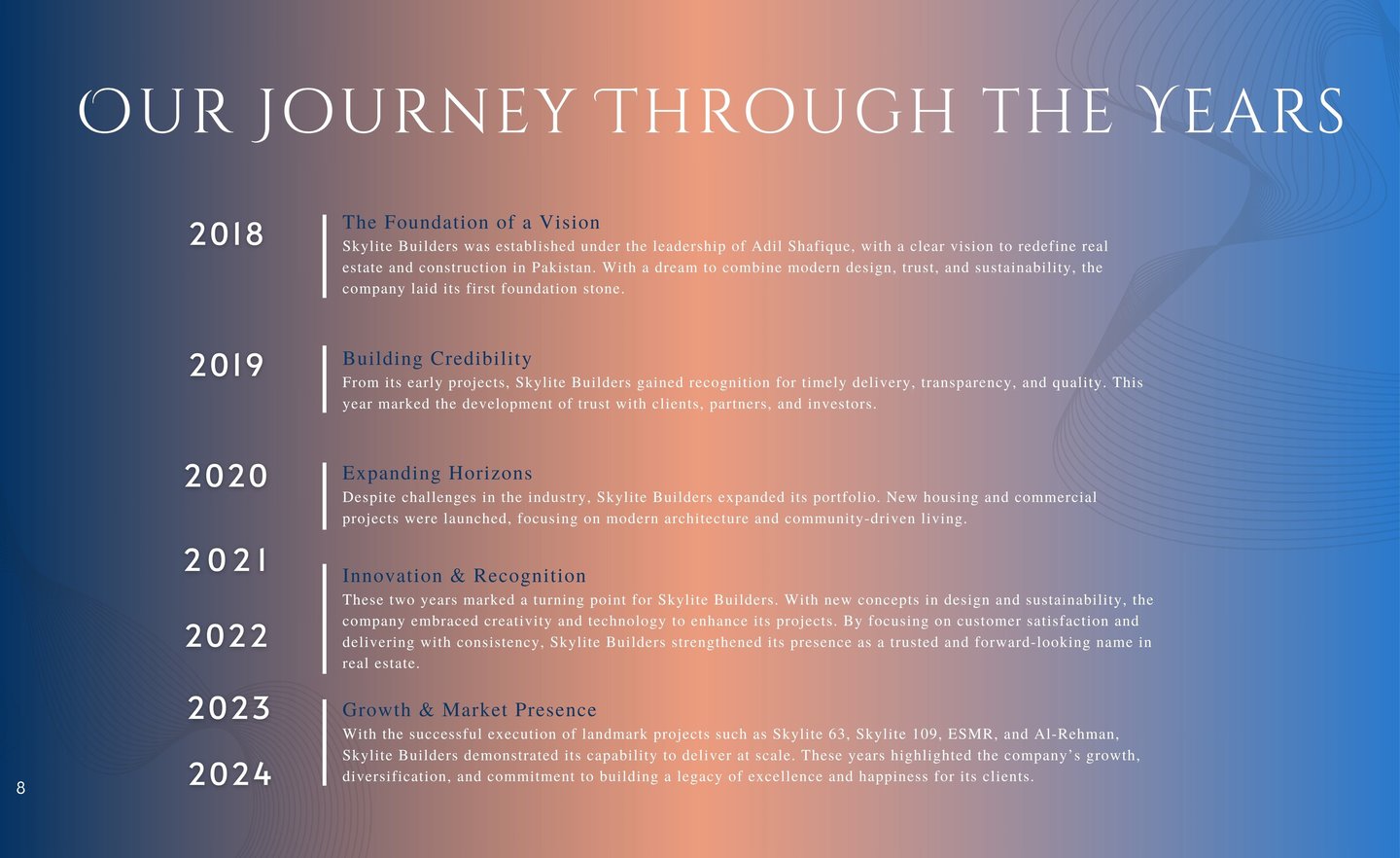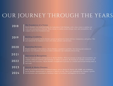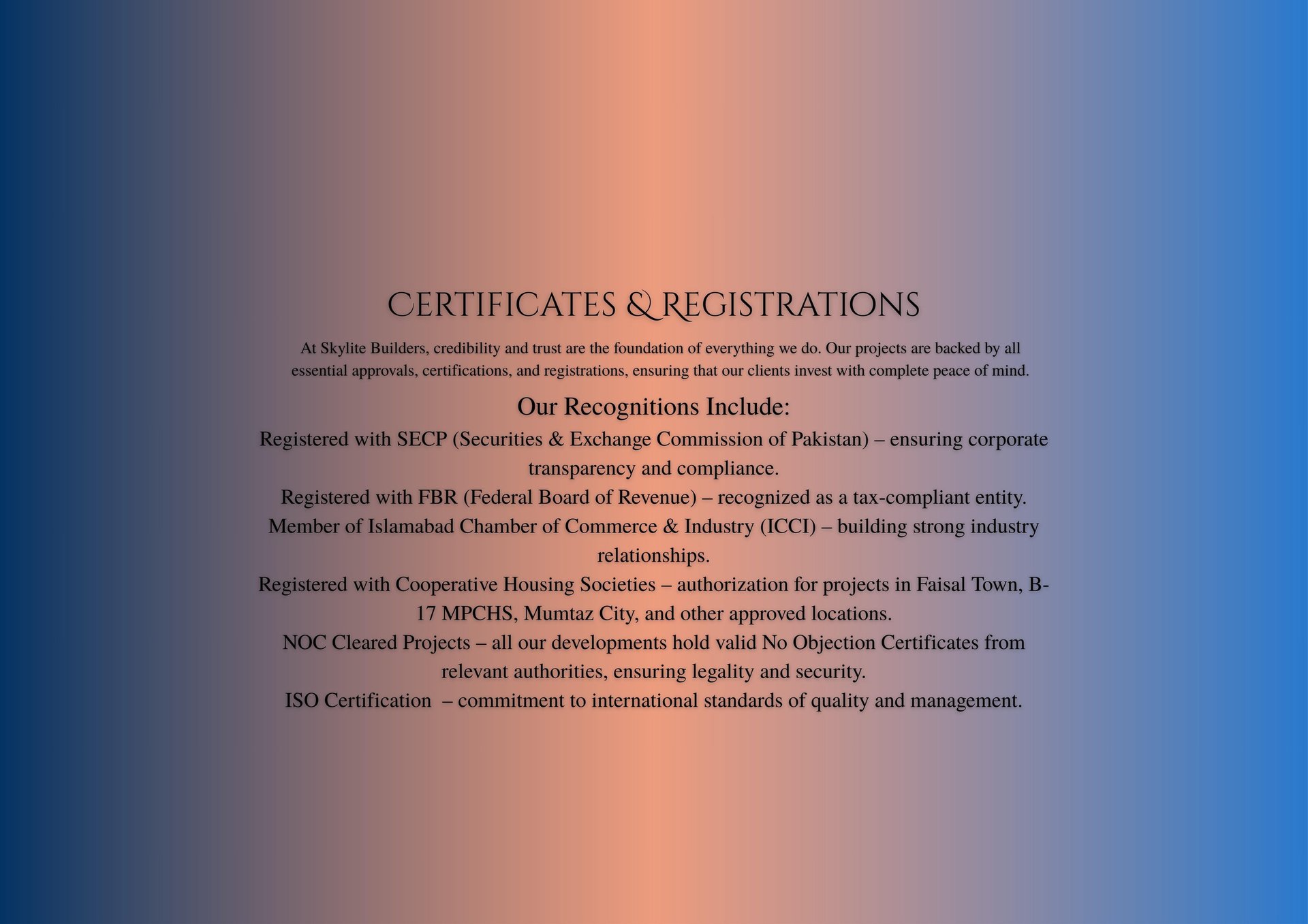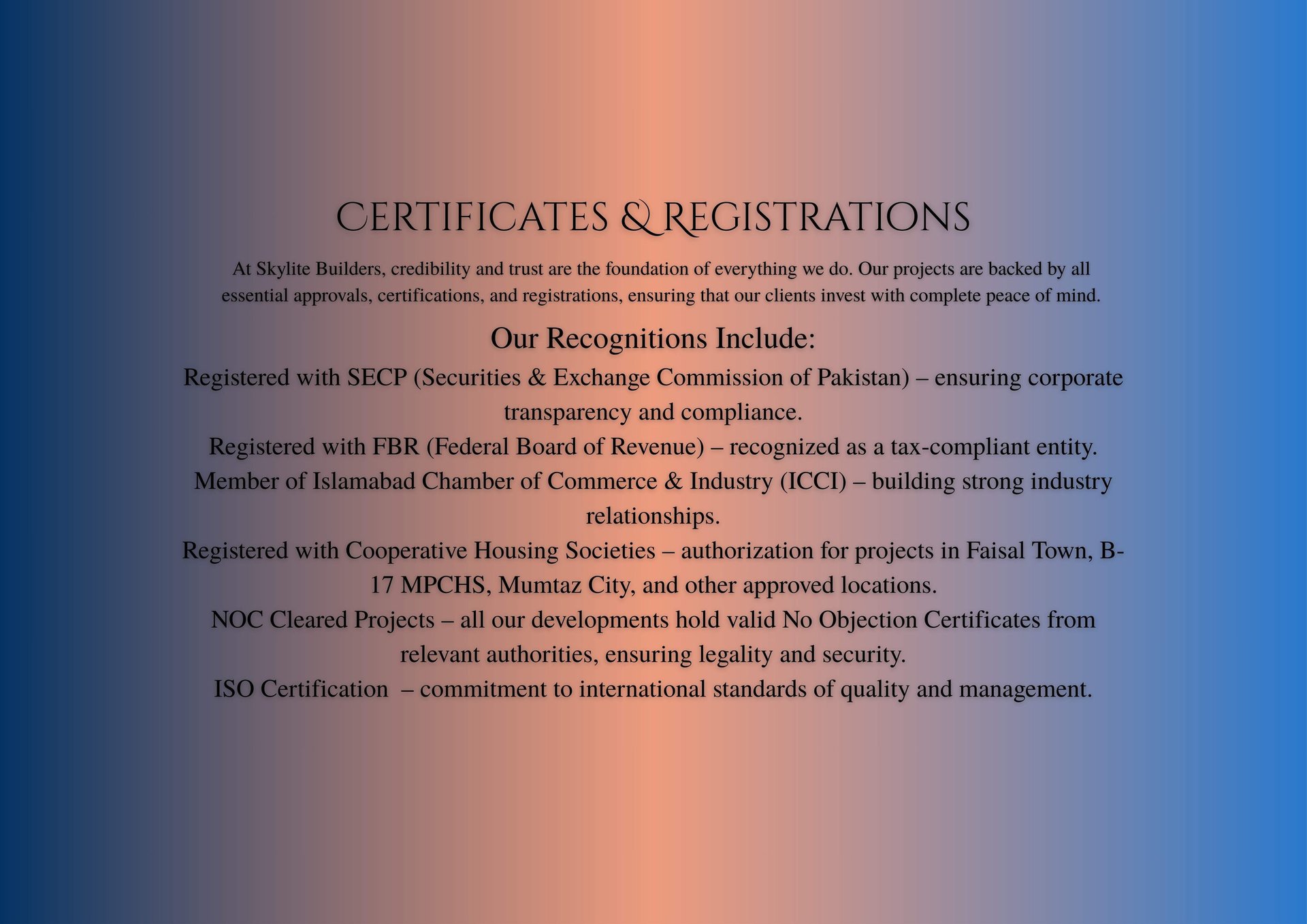 What began as a vision to redefine the standards of real estate development has today become a journey of milestones and achievements. Skylite Builders has grown into one of Pakistan’s most respected development firms, recognized for its timely delivery, superior craftsmanship, and long-term value creation.